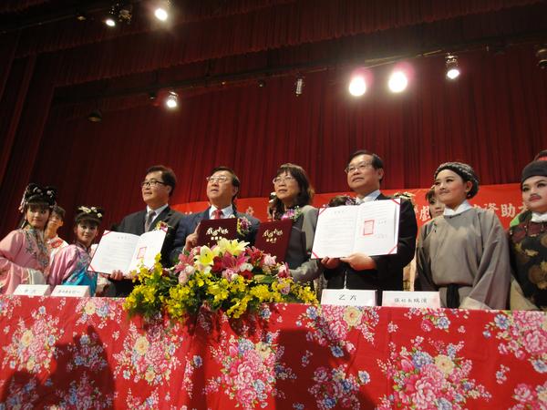 • 華夏103年4月29日扶助台灣戲曲學院見證簽約活動 夏協助新竹縣弱勢家庭學生就讀國立台灣戲曲學院,於103年4月29日由新竹縣邱縣長鏡淳、中華傳統技藝協會潘理事長行一、國立台灣戲曲學院張校長瑞濱三方簽約,並由本會王理事長如玄擔任見證人…<轉載自以下報導> 回上一頁